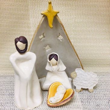No previous clay experience required! The clay pieces will be precut for you, but you will learn how to will mold, shape and attach them under guided instruction to create a six piece nativity set. This will require three class periods to complete. On November 20th you will come back to glaze and paint the set. Our staff will dip your pieces in clear glaze, and fire them in the kiln. The Nativity will be ready for pick up in early December.