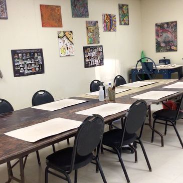 The studio can accommodate classes, mini workshops and private parties for up to 16 people while still feeling spacious enough to walk around and work.